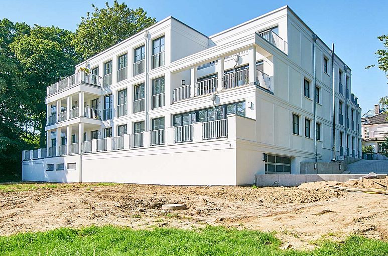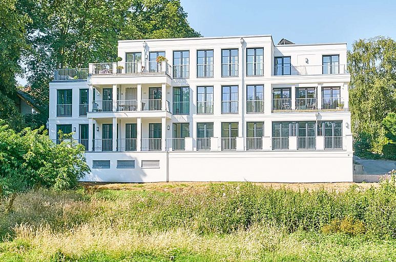 Die zeitlose, klassische Villenarchitektur fügt sich ideal in dieses hochwertige Umfeld ein. Das Gebäude wurde von dem Architekturbüro Westphal und Partner individuell für dieses Grundstück konzipiert. Von sämtlichen Wohnungen eröffnet sich ein ganz besonderer Ausblick über das Parkgrundstück und den eigenen See.