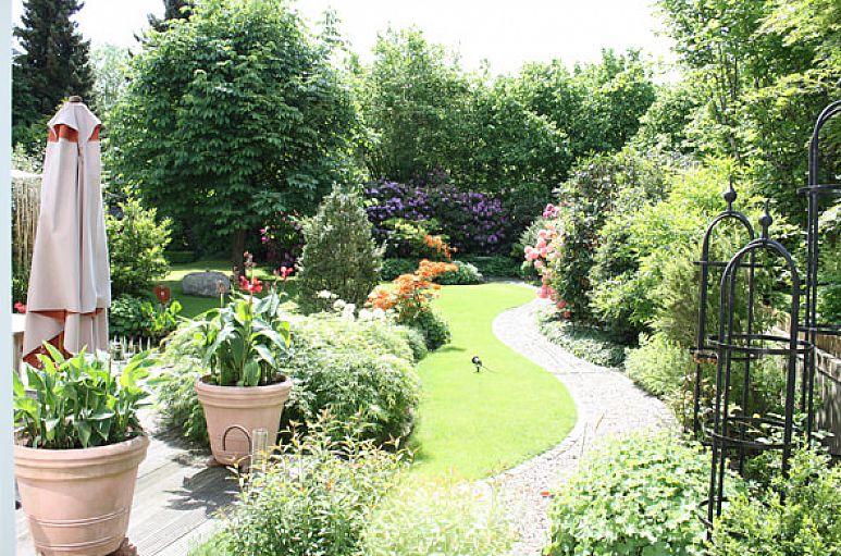 Das real geteilte Grundstück verfügt über eine Größe von etwa 500 m². Ideale Süd-Ausrichtung. Liebevoll angelegter Garten mit großzügigen Terrassenflächen.