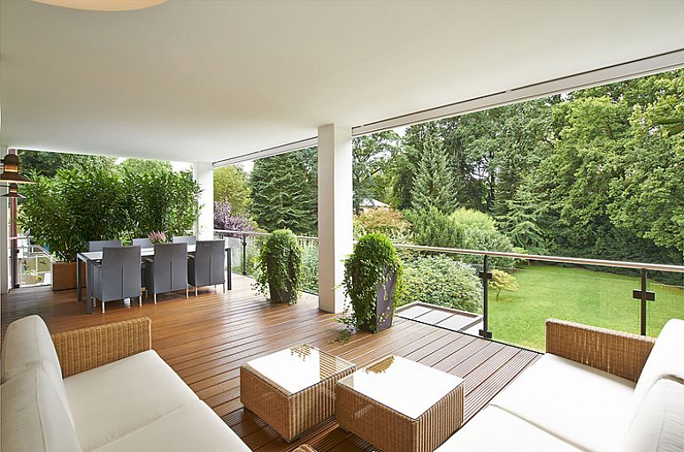 Die hochwertige Villa mit vier Wohneinheiten wurde 2010 als KfW 40 Haus erbaut. Zeitlose, klassische Villenarchitektur mit hoher Energieeffizienz und Wärmerückgewinnung. Die angebotene Wohnung erstreckt sich über das komplette erste Obergeschoß des Hauses und wurde ohne Rücksicht auf Kosten außerordentlich aufwändig und hochwertig ausgestattet. Klassische Raumfolgen und großzügige Räume prägen zusammen mit der ausgewählt hochwertigen Ausstattung einen ganz besonderen Charakter. Die etwa 37 m² große, überdachte Balkonanlage mit der Größe einer Penthouse – Terrasse und Bangkirai Holzbelag eröffnet einen herrlichen Blick über das Grundstück und die angrenzenden Gärten. Zwei elektrisch betriebene Markisenanlagen.