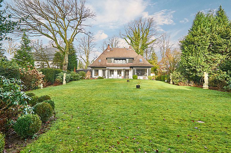 Das Zusammenspiel von einem Ausnahmegrundstück in erstklassiger Wohnlage und der klassischen Villenarchitektur, die auf ideale Weise mit diesem Grundstück harmoniert, prägt den besonderen Charakter.