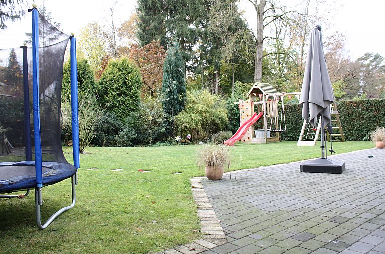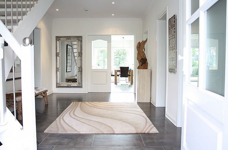 Das etwa 659 m² große Grundstück verfügt über eine ideale Süd-West-Ausrichtung des hinteren Gartens. Große Terrasse über die gesamte Hausbreite. Pflegeleichte Gartenanlage mit Rasenfläche und vielen, immergrünen Abpflanzungen. Friesenwall mit weißem Eingangstor. Weißes Carport im Landhausstil mit Platz für zwei PKW.