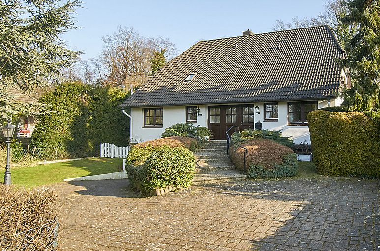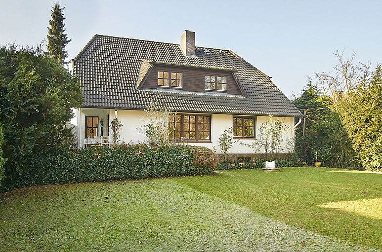 Das rückwärtige Grundstück grenzt direkt an ein kleines Waldgebiet, das in das Naturschutzgebiet der Volksdorfer Teichwiesen übergeht und bietet dadurch einen wunderschönen Blick in die Natur. Liebevolle Gartenanlage, gepflasterter Vorplatz.