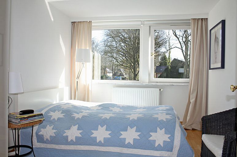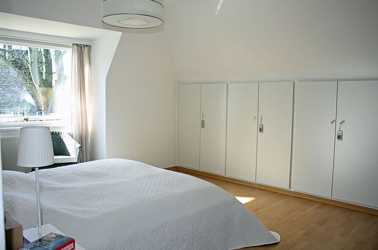 Großzügiges, helles Entrée mit Garderobeneinbauten und Treppenanlage zum Dachgeschoss. Alle Wohn- und Schlafräume sind mit Parkettfußböden ausgestattet. Weiß lackierte Fenster und Türen. Außerordentlich großzügiger, ineinander übergehender Wohn-/ Essbereich mit zweiflügeliger Schiebetüranlage und interessanten Licht- und Blickachsen, davor die breite Balkonterrasse mit Sonne von Süden und Westen. Ein sehr reizvoller Weitblick ins Grüne und über angrenzende Gärten. Großzügige Einbauküche komplett mit E-Geräten und Platz für einen Esstisch. Schrankeinbauten. Vier reelle Schlafzimmer. Großzügiges, weißes Bad mit moderner Ausstattung, Glasdusche und Fußbodenheizung. Weiße Objekte, Chrom-Armaturen, Handtuchtrockner. Gäste-WC im gleichen Stil. Ein PKW-Stellplatz im Carport und ein offener Stellplatz vor dem Carport gehören zu der Wohnung.