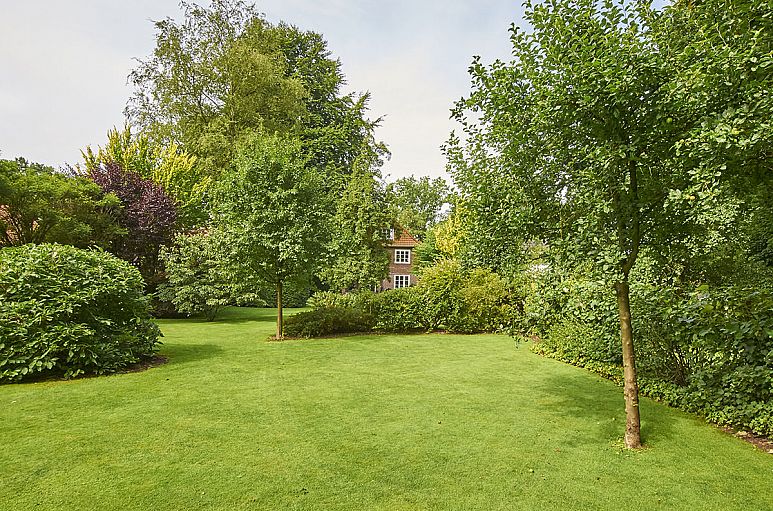 Das Grundstück verfügt über eine Größe von 2.193 m². Der liebevoll angelegte Garten mit weiten Rasenflächen, Hecken und Beeten bietet ein hohes Maß an Intimität. Wege zum Haus und in den Garten sind mit Granit gepflastert. Breite Holz-Terrassenanlage, seitlich von Mauern begrenzt. Gemäß Bebauungsplan scheint eine weitere Bebauung im rückwärtigen Grundstücksbereich möglich.
