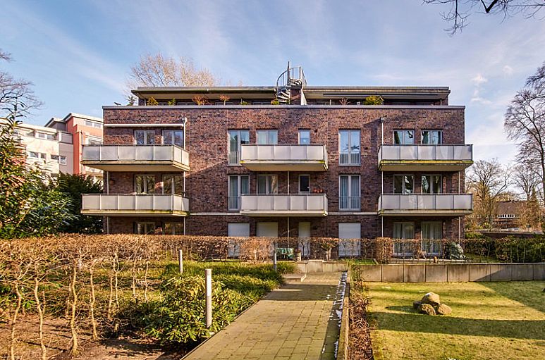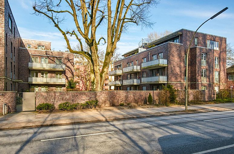 Die Wohnanlage wurde 2007 direkt am Volksdorfer Ortskern erbaut und besteht aus zwei Baukörpern, die durch die Tiefgarage verbunden sind. Die zum Kauf angebotene Eigentumswohnung liegt im ersten Obergeschoss Mitte des Hauses 2 mit insgesamt 11 Wohnungen und Lift.