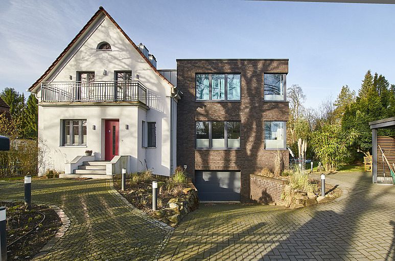 VILLA IN PERFEKTER HARMONIE! UMFANGREICH SANIERTER ALTBAU MIT KUBISCHEM ZWEIGESCHOSSIGEN ANBAU IN SEHR BEVORZUGTER, RUHIGER WOHNLAGE VON VOLKSDORF.