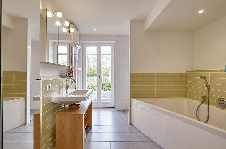 Im Zuge der Kernsanierung des Altbaus 2010 wurde das gesamte Dach neu gedämmt und eingedeckt. Die Aussenfassade wurde ebenfalls mit 16 cm Dämmung versehen. Einbau neuer Fenster und Türen. Elektroinstallationen, Wasser- und Abwasserleitungen wurden erneuert, ebenso Heizkörper und -rohre. Der Vollkeller wurde mit Fußbodenheizung ausgestattet. Der kernsanierte Altbau sowie der Neubau fügen sich als großzügige Villa sehr harmonisch zusammen. Die gesamte Villa wurde hochwertig ausgestattet. Helle Eichendielen-Fußböden in Erd- und Obergeschoss. Einbau eines klassischen Marmorkamins. Beleuchtung mit zahlreichen Einbauleuchten. Glatte Wände und Decken. Sehr hochwertige 3-fach verglaste Holz- / Alufenster. Fußbodenheizung im gesamten Neubau. Gasheizung mit Solarunterstützung. Große Eingangsdiele mit klassischer Holztreppenanlage in anthrazit. Sehr großzügiger Wohn- / Essbereich mit offener Küche gehen auf etwa 91,5 m² ineinander über und schaffen eine ganz besondere Atmosphäre. Großzügige Deckenhöhen. Offene Küche mit Kochtresen, inkl. breitem Kochfeld und versenkbarem Dunstabzug in der Arbeitsplatte. Moderne Bäder mit bodengleichen Duschen sowie hochwertigen Armaturen und Objekten u.a. Regendusche direkt aus der Decke. Geräumige Kinderzimmer mit sehr guter Belichtung. Etwa 80 m² große und breite Terrassenanlage mit aufwendigem, neigbaren Markisendach. Vollkeller mit zwei wohnlich ausgebauten Räumen (19 m² + 9 m²) und einem Duschbad (7 m²) sowie vorgelagerter Patio-Terrasse, Abstell-, Vorrats-, Heizungskellerräumen. Alarmanlage mit Aussenhautsicherung und Aufschaltung auf eine Wachzentrale. Bewässerungssystem im Garten.