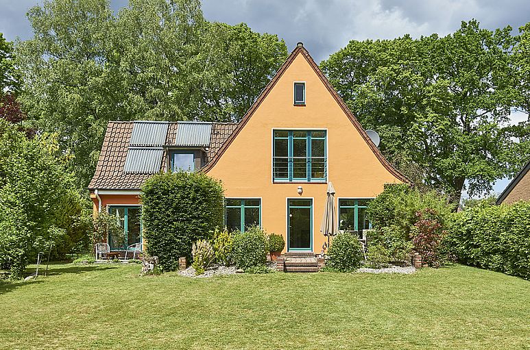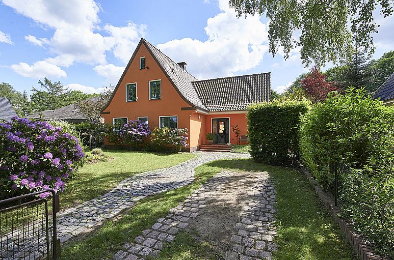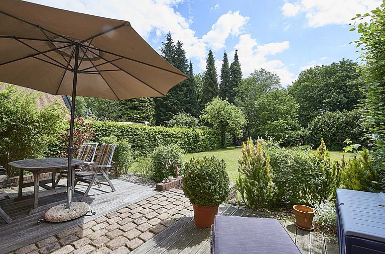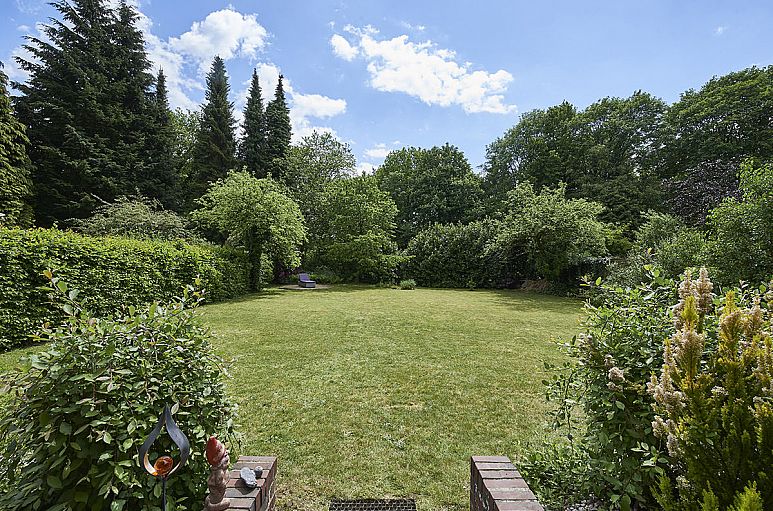Das Grundstück verfügt über eine Größe von 1.088 m² und eine ideale Süd-Ausrichtung. Ein gewachsener Garten mit großen Rasenflächen, Buchenhecken, Rhododendren und Obstbäumen. Zwei Terrassen am Haus sind mit Bangkirai und Naturpflaster angelegt, eine weitere befindet sich im hinteren Bereich des Gartens. Die Zuwegungen sind aus Natursteinpflaster.