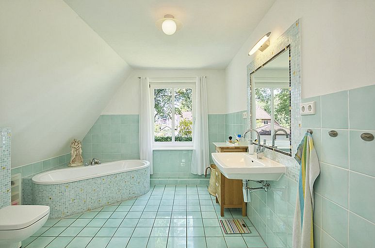 2002 Renovierungen / Sanierungen: Dämmung der oberen Geschossdecke und der Dachseiten und Verkleidung der Räume im Dachgeschoss mit Mineralfaserplatten. Neue Fenster aus Merantiholz und Haustür mit Sicherheitsverglasungen und Pilzkopfbeschlägen, im Keller Kunstofffenster mit Sicherheitsverglasungen und -beschlägen. Elektroinstallation mit hohem Standard. TV-SAT-Anschlüsse und Telefonanschlüsse in jedem Wohnraum. VDSL plus Kabelanschluss. Wasserleitungen bis zum Hausanschluss an der Straße erneuert. Kaltwasser-, Warmwasser und Zirkulationsleitungen aus Edelstahl. Einbau einer solarunterstützten Heizungsanlage von Solvis mit Gas-Brennwertkessel und Pufferspeicher, thermische Solarkollektoren (ca. 12 m²) für Warmwasser und Heizung, Leitungen Edelstahl. Einbau neuer Heizkörper. Mediterrane Fliesen im Atelier und im Gäste-WC/Duschbad, das mit einer bodengleichen Dusche ausgestattet ist. Holzdielen im Obergeschoss geschliffen und versiegelt, Hamburger Fußleisten. Vollbad im Obergeschoss mit Fußbodenheizung, Wanne und Dusche, italienische, handgefertigte Fliesen in Aquamarin, Muranoglas-Mosaike. Küchenbereich und Eingangsdiele mit Bodenfliesen in mediterranen Farbtönen. ALNO Proline Küche mit Kirschholzfurnier, Geräte Neff, Bosch, 80 cm Ceranfeld. Landhaus-Innentüren mit profilierten Zargen aus Massivholz. 2011 wurden im Wohnbereich Eichendielen verlegt, Einbau eines dreiseitig verglasten Kaminofens mit Heizwirkung. Die Kellerwände wurden 2006 bis zum Fundament aufgegraben und mit Anstrich und Dämmplatten isoliert. Kellerdecke gedämmt.
