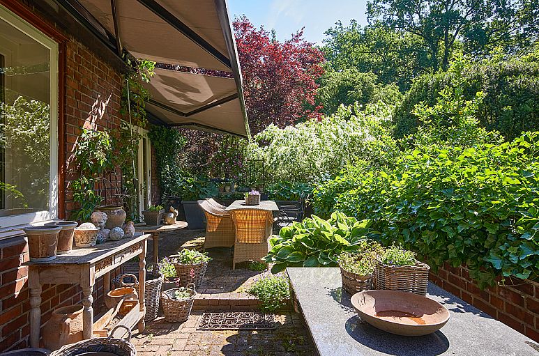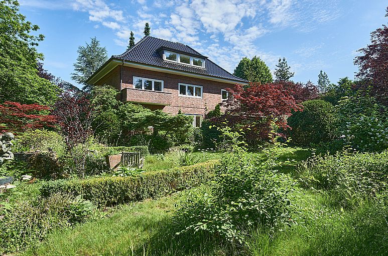 Das Grundstück verfügt über eine Größe von 1.740 m². Ideale Süd - Ausrichtung und etwa 44 m Breite! Der alte Garten mit weiten Rasenflächen, Hecken, Beeten und Kieswegen verfügt über einen ganz eigenen Charme. Die breite, erhöht angelegte Terrassenanlage ist mit roten Steinen gepflastert und wird durch eine Mauer zum Garten hin begrenzt. Das Grundstück befindet sich im Erhaltungsbereich des Bebauungsplans von Hamburg Wohldorf - Ohlstedt.