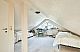 Ausgebautes Dachstudio im Spitzboden mit Zugang über eine weiße Holztreppenanlage.