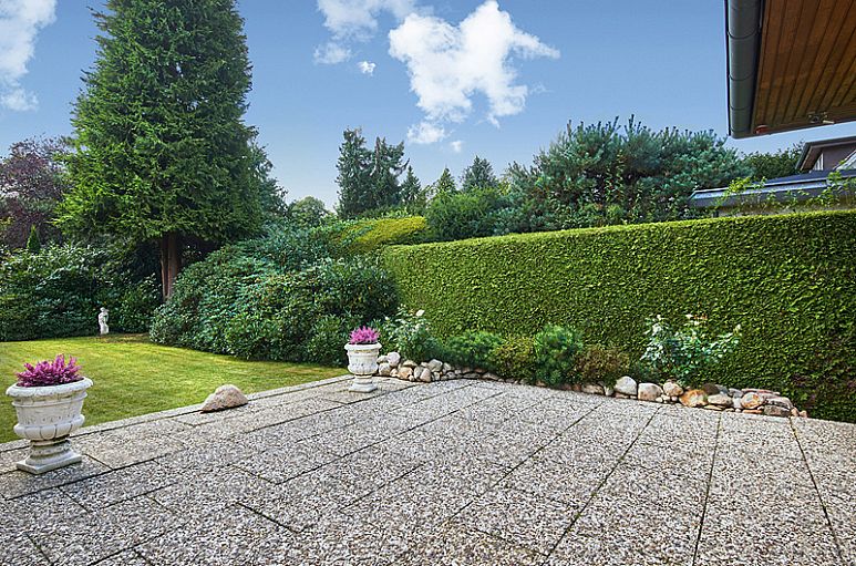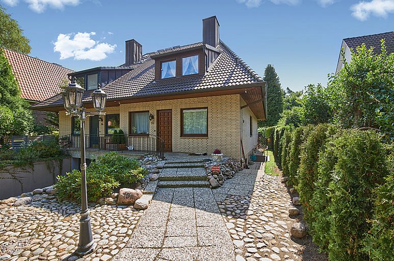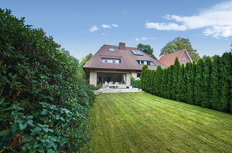 Das Grundstück (Realteilung) verfügt über eine Größe von 558 m² und eine ideale Süd-Ausrichtung. Sehr schön angelegter, blickgeschützter Garten mit zahlreichen Rhododendren, Hecken und Rasenflächen.