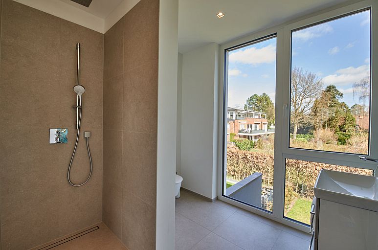 Im Obergeschoss befinden sich drei sehr reelle Zimmer und ein Duschbad mit bodengleicher Dusche, sowie ein Abstellraum. Das Staffelgeschoss verfügt über einen 30,70 m² großen Raum mit begehbarem Schrankbereich, davor die überdachte Dachterrasse. Vollbad mit separierter Dusche und WC.