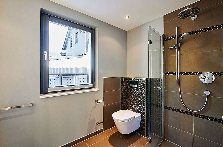 Großer Wohn-/Essbereich mit bodentiefen Fenstern und Zugang zur breiten Balkonterrasse. Weiße Einbauküche mit Edelstahl Geräten von Neff. Zwei Bäder mit hochwertigen Sanitärobjekten und großformatigen Fliesen. Vollbad mit Doppelwaschtisch und breiter Badewanne. Duschbad mit bodengleicher Dusche und Ablaufrinne. Edle Eiche Dielen - Fußböden in allen Wohn- und Schlafzimmern und der Küche. Fußbodenheizung in allen Räumen. Breite, überdachte Balkonterrasse mit traumhaftem Blick ins Grüne. Zusätzliche seitliche Terrasse vom Schlafzimmer aus begehbar. Holzfenster und Türen in der gesamten Wohnung. Beide Wohnungsebenen haben einen direkten Zugang zum Treppenhaus mit Fahrstuhl. Weiterhin gehört zu der Wohnung ein Kellerabstellraum sowie ein Tiefgaragenstellplatz.