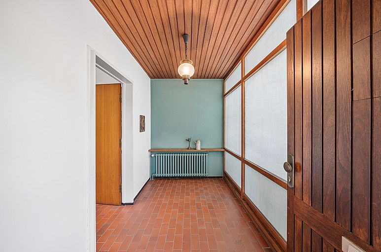 Das großzügige Einfamilienhaus wurde 1964 mit einem Satteldach und Vollkeller erbaut. Die Ausstattung entspricht dem Baujahr des Hauses. Dieses Haus eignet sich aufgrund der Raumaufteilung auch sehr gut für eine größere Familie, die Kombination von Wohnen und Arbeiten oder zwei Generationen unter einem Dach. Der besondere Charakter dieses reizvollen Architektenhauses wird geprägt durch klare Linien, die hohe Eingangshalle bis in das Dach hinein geöffnet mit Tageslicht und Deckenhöhen von bis zu 5,5 Metern sowie dem reizvollen Südgarten in ruhiger Wohnlage.