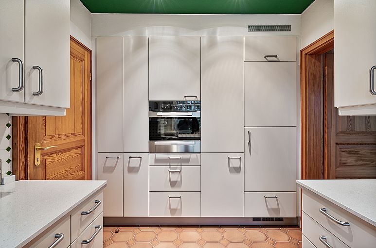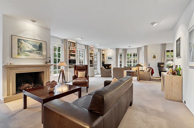 Sehr gelungene Raumaufteilung mit großzügigem Entrée sowie einem großen Wohn- / Essbereich. Im Dachgeschoss befinden sich drei große Schlafzimmer sowie drei Bäder. Die Raumhöhen in Erd- und Dachgeschoß betragen 2,60 m. Der Wohn-/ Essbereich mit Kamin bietet einen herrlichen Blick auf das Grundstück sowie das angrenzende Naturgebiet. Ausgangstüren zur seitlichen und hinteren Terrassenanlage. Die Küche mit weißen Einbauten und Miele / Siemens Geräten wurde 2009 erneuert, Kühlschrank und Backofen wurden 2024 erneuert. Im Dachgeschoss befindet sich ein Elternschlafbereich mit angrenzendem Ankleidezimmer und Vollbad. Darüber hinaus gibt es zwei weitere große Zimmer mit jeweils eigenen Duschbädern (eines davon 2008 erneuert). Fußbodenheizung in Entrée, Küche sowie dem Vollbad, Wohnzimmer mit versenkten Konvektoren. Hochwertige Schrankeinbauten im Wohnbereich sowie im Ankleidezimmer. Granit Terrassenanlage über die gesamte Hausbreite sowie seitlich des Hauses (2008 erneuert) bietet einen wunderschönen Blick über das Grundstück in die Natur. Großer Keller mit üblichen Abstell-, Vorrats- und Heizungsräumen. Die weiß lackierten Meranti - Holzfenster (Fa. Lantz) wurden 2008 erneuert. Die Dacheindeckung wurde 2017 neu beschichtet.