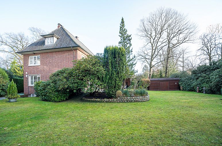 Das breite, uneinsichtige Grundstück ist gut eingewachsen und verfügt über eine Größe von etwa 1.793 m². Liebevoll angelegter Garten mit großen Rasenflächen, Rhododendren und zahlreichen Abpflanzungen.