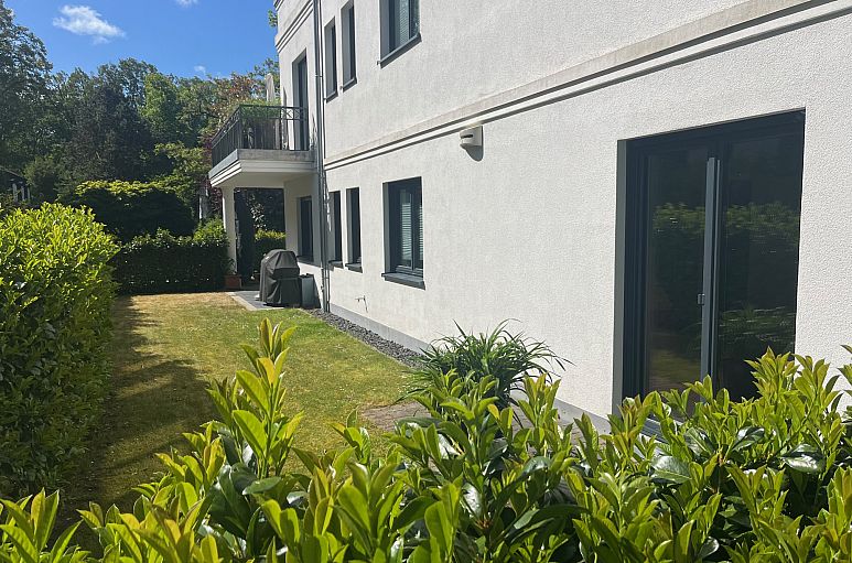 Das Gebäude mit insgesamt 5 Wohneinheiten wurde 2015 erbaut. Zum Verkauf steht eine Wohnung im Erdgeschoss mit sehr reizvoller, teilweise überdachter Süd – Terrassenanlage und Nutzung der umgebenden Gartenbereiche.