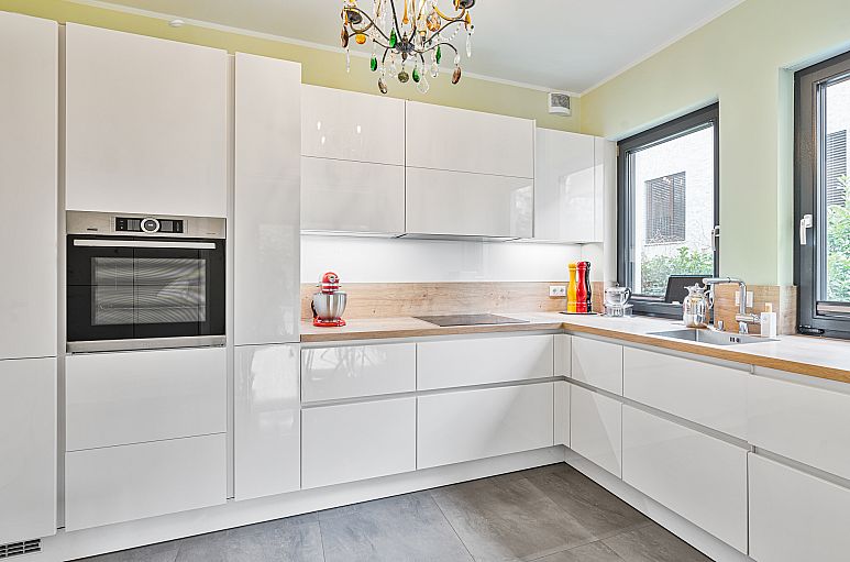 Sehr schön geschnittener Wohn-/Essbereich mit doppelflügeliger Schiebetür zur Küche. LEICHT- Einbauküche mit Geräten von Bosch - Accent Line. Helle Eiche Dielen - Fußböden, in der Küche und den Bädern großformatige Fliesen. Fußbodenheizung in allen Räumen. Holzfenster und Türen rundherum mit Rollläden per WLAN steuerbar. Großes Vollbad mit Badewanne und bodengleicher Dusche. Weiteres Duschbad sowie Gäste - WC vorhanden. Hochwertige weiße Einbauschränke in Diele und Schlafzimmer. Sonnige, teilweise überdachte Süd - Terrassenanlage. Zusätzliche seitliche Terrasse vom Schlafzimmer aus begehbar. Die Wohnung ist durch eine Alarmanlage gesichert. Ein Fahrstuhl zur Tiefgarage ist vorhanden. Weiterhin gehört zu der Wohnung ein geräumiger Kellerabstellraum sowie ein großzügig dimensionierter Tiefgaragenstellplatz. Das Haus ist energieeffizient wärmegedämmt und verfügt über eine Be- und Entlüftungsanlage.