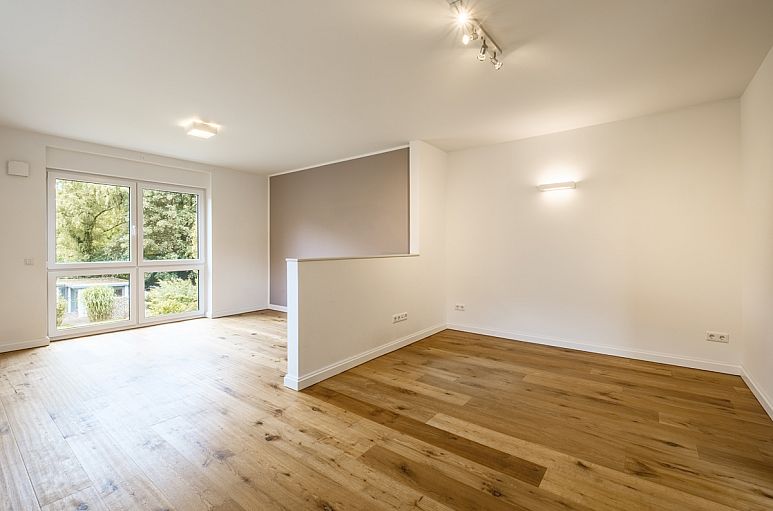 Die Deckenhöhen im Erd-/ und Obergeschoss betragen etwa 2,60 m, im Wohnbereich etwa 2,93 m und im Staffelgeschoß überwiegend etwa 2,60 m. Entrée, Gäste-WC, Flur und Küche mit großformatigen Feinsteinzeugfliesen. Holzdielen im Wohn-/ Essbereich und den oberen Geschossen. Fußbodenheizung im gesamten Haus inklusive dem Keller. LAN-Verkabelung. Die Bereiche Wohnen, Essen und Kochen gehen großzügig auf etwa 78,5 m² ineinander über. Besonders reizvolle Treppenanlage mit holzbelegten Stufen, geschlossenen Wangen und Lichteinfall durch große, bodentiefe Fenster mit satiniertem Glas. 3 – seitig verglaster Kamin. Ein herrlicher Ausblick in den Garten. Zwei breite Schiebetüranlagen zur Terrasse. Die Wohnküche wurde mit einer Kochinsel und Essplatz konzipiert. Hochwertige weiße Einbauküche mit zahlreichen Schubladen und E- Geräten von Siemens Studioline. Breites Induktionskochfeld, Gutmann Capa - Umlufthaube. Zweitüriger Kühl-/ Gefrierschrank von Samsung mit Edelstahloberfläche, Eiswürfelbereiter / Wasserspender und Homebar-Tür. Weinkühlschrank von Liebherr. Einen reizvollen Akzent setzt die mit Sichtmauerwerk gearbeitete Wand am Essplatz. Im Obergeschoss befinden sich drei sehr reelle Zimmer und zwei Duschbäder. Die Duschbäder sind mit bodengleichen Duschen, großformatigen, granitfarbenen Feinsteinzeug – Fliesen und weißen Objekten ausgestattet. Design Doppel-Waschtische von Villeroy & Boch mit Unterschränken, breiten Spiegeln sowie Handtuchtrocknern. Duschbad I en-Suite von Zimmer III begehbar. Duschbad II mit einer Duschabtrennung aus Glasbausteinen mit Ambilight-Beleuchtung. Staffelgeschoss mit großem Zimmer und Ausgang auf die Dachterrasse, Ankleidebereich und Vollbad en-Suite. Ein weiteres Zimmer ist vorhanden. Großzügiges Vollbad mit Duo-Badewanne und bodengleicher Dusche mit gemauerter Duschabtrennung. Weiße Objekte, eingerahmt von Glasmosaik in Erdfarbtönen und Boden mit Feinsteinzeug-Holzdielen. Doppel- Waschtisch mit Unterschrank. Breiter Spiegel. Handtuchtrockner. Im Teilkeller mit Fußbodenheizung befindet sich ein ausgebauter Raum mit guter Belichtung, der ideal als Gäste- oder Arbeitszimmer geeignet ist. Durch das breite Fenster und die Abböschung nach Süden verfügt dieser über eine gute Belichtung. Hauswirtschafts- und Technikraum mit Heiztechnik. Wäscheabwurf aus den oberen Geschossen. Alarmsystem. Hochwertiges Saunahaus mit Terrassenanlage im hinteren Bereich des Gartens. Hier befindet sich ein großzügiger Entspannungsbereich mit Kaminofen, die Sauna und ein Duschbad mit WC. Zusätzlich ist hier ein Abstellraum für Gartengeräte vorhanden. Zufahrt und Zuwegungen gepflastert. Stahl - Zaunanlage mit elektrischer Toranlage und Video- Gegensprechanlage. Seitlich neben dem Haus ein weiterer gepflasterter Bereich mit Gartengerätehaus und Kaminholzlager. Carport für zwei PKW nebeneinander.