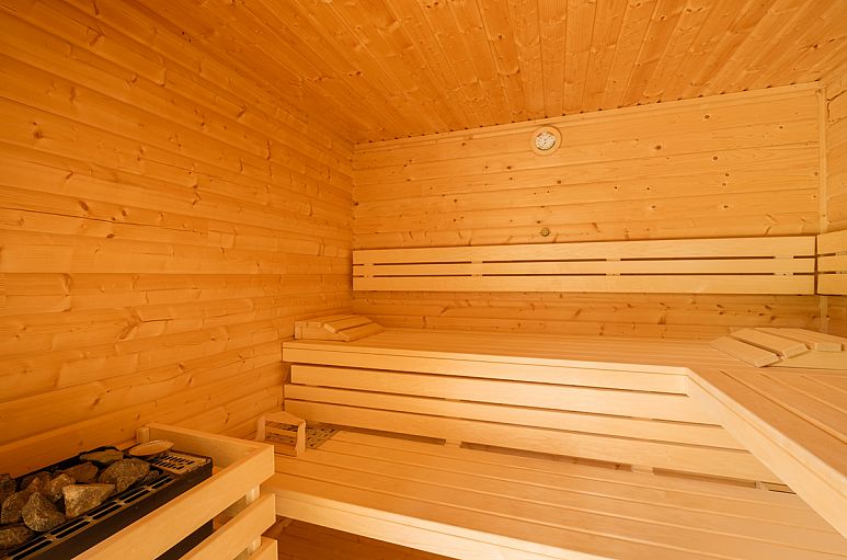 zzgl. Saunahaus im hinteren Gartenbereich mit reizvollem Holzdeck.