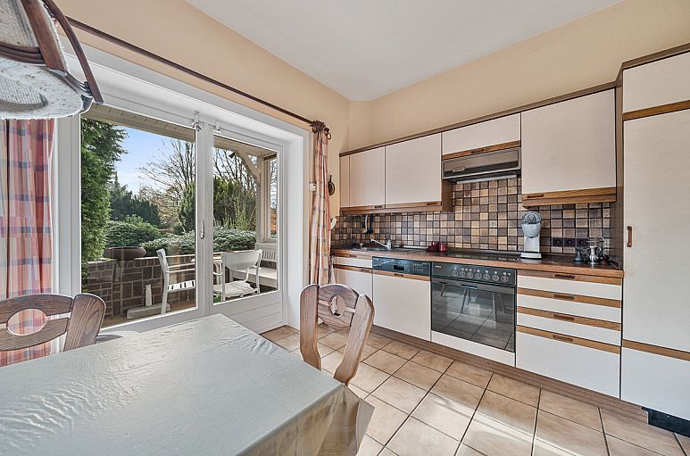 Im Erdgeschoss befinden sich neben dem Wohn- und Essbereich, Küche, Diele, Gäste-WC. Der Wohn-/ Essbereich verfügt über einen reizvollen Blick und Ausgang auf die Süd-Terrasse und in den Garten. Von der Küche ebenfalls Ausgang auf eine Veranda mit Südausrichtung und Zugang zum Garten. Das Dachgeschoss bietet zwei sehr reelle Zimmer, ein kleines Zimmer, Vollbad und Flur. Vollkeller mit üblichen Kellerräumen, Hauswirtschafts-, Heizungs-/ Öltankraum sowie Außenzugang. Es besteht umfassender Modernisierungsbedarf.