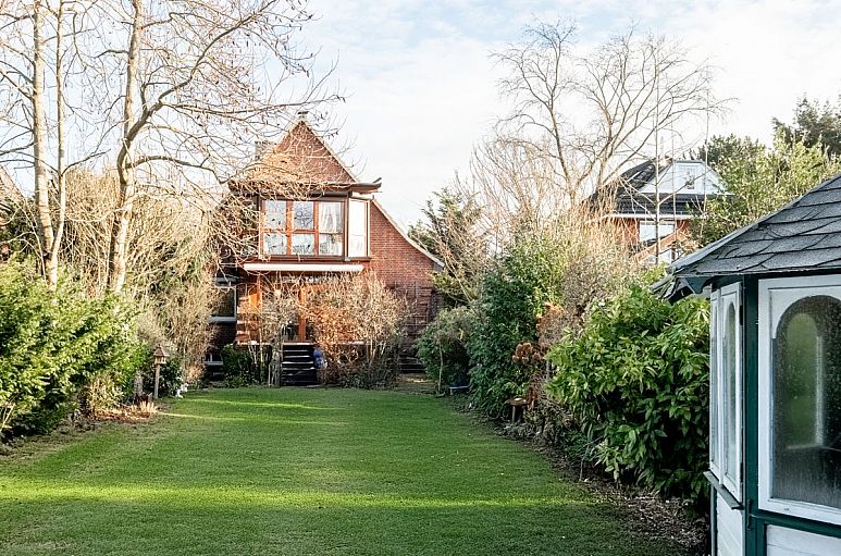 Das Grundstück mit idealer Süd-/ West - Ausrichtung verfügt über eine Größe von etwa 999 m². Pflegeleichter, liebevoll angelegter Garten mit Rasenfläche, alten Rhododendren und zahlreichen immergrünen Abpflanzungen. Ein kleiner Tee-Pavillon (renovierungsbedürftig) im hinteren Garten.