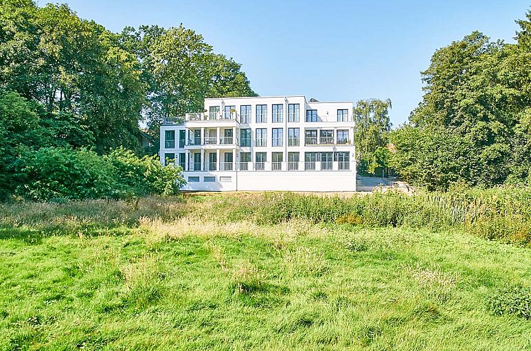 Die zeitlose, klassische Villenarchitektur fügt sich ideal in dieses hochwertige Umfeld ein. Das Gebäude wurde von dem Architekturbüro Westphal und Partner individuell für dieses Grundstück konzipiert. Von sämtlichen Wohnungen eröffnet sich ein ganz besonderer Ausblick über das Parkgrundstück und den eigenen See.