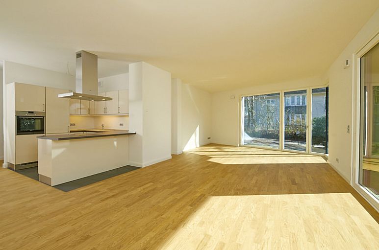 Die Fertigstellung war im April 2014. Aufwändige, moderne Architektur mit großzügigen, lichtdurchfluteten Räumen. Fahrstuhlanlage. Großzügige Dachterrassen, Balkone und Terrassen mit Sonne von Süden und Westen. Bodentiefe Fenster / Schiebetüren zu den Balkonen bzw. Terrassen. Zentrale Be- und Entlüftungsanlage. Folgende Ausstattungen sind vorgesehen (Änderungen bleiben vorbehalten): Eichenparkett. Fußbodenheizung in allen Räumen. Vollbad mit weißen Objekten und Chrom-Armaturen, Doppelwaschbecken und ebenerdiger Dusche. Zusätzlich ein Duschbad in gleicher Ausstattung ( Penthouse-Wohnungen mit Gäste-WC ). Die Bäder erhalten großformatige Fliesen, Wände in weiß bzw. Glasmosaik in weiß, Fußböden anthrazitfarben gefliest. Sämtliche Wohnungen erhalten Marken-Einbauküchen mit weißen Hochglanzfronten, Ceran-Kochfelder und Backöfen in Augenhöhe, Geschirrspülmaschine, Kühl - / Gefrierkombination. Wohn - / Essbereiche und Küchen sind offen miteinander verbunden. Küchen mit großformatigen Fliesen, farblich an das Eichenparkett angepasst. Hauswirtschaftsraum mit Waschmaschinenanschluß in jeder Wohnung, Fliesenbelag wie Küche. Abstellraum. Pellet-Heizung.