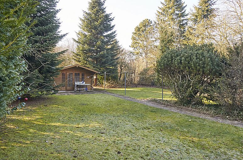 Das etwa 19 m breite Grundstück verfügt über eine Größe von 1.117 m². Ideale West-Ausrichtung des hinteren Gartenbereichs. Das Grundstück liegt im Geltungsbereich des Bebauungsplans Volksdorf vom 5.9.2005, und ist als Erhaltungsbereich ausgewiesen. Erweiterungen der Häuser sind zulässig. Reines Wohngebiet, Ausweisung WR - I - O. Eingeschossige Bebauung zzgl. ausgebautem Dachgeschoss zulässig, bebaubare Grundfläche 150 m², 1 WE, nur Einzelhäuser sind zulässig. Pflegeleichte Gartenanlage mit großer Rasenfläche und zahlreichen Abpflanzungen. Überdachte Terrasse mit Sonne von Süden und Westen. Ein geräumiges Gartenhaus im hinteren Gartenbereich