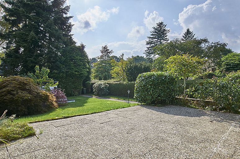 Das Grundstück verfügt über eine Größe von 866 m², Teilung gemäß WEG. Der vor dem Haus belegene Garten verfügt über eine Süd-Ausrichtung. Dieser Teil des Gartens wird durch die Garagen zur Straße hin abgeschirmt und ist nahezu uneinsehbar. Hinter dem Haus befindet sich ebenfalls eine Gartenfläche. Pflegeleichte Anlage mit Rasenflächen und immergrünen Abpflanzungen.