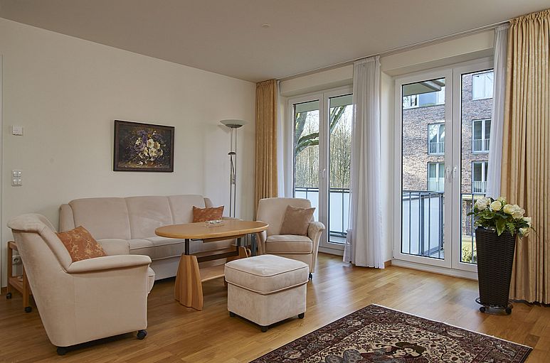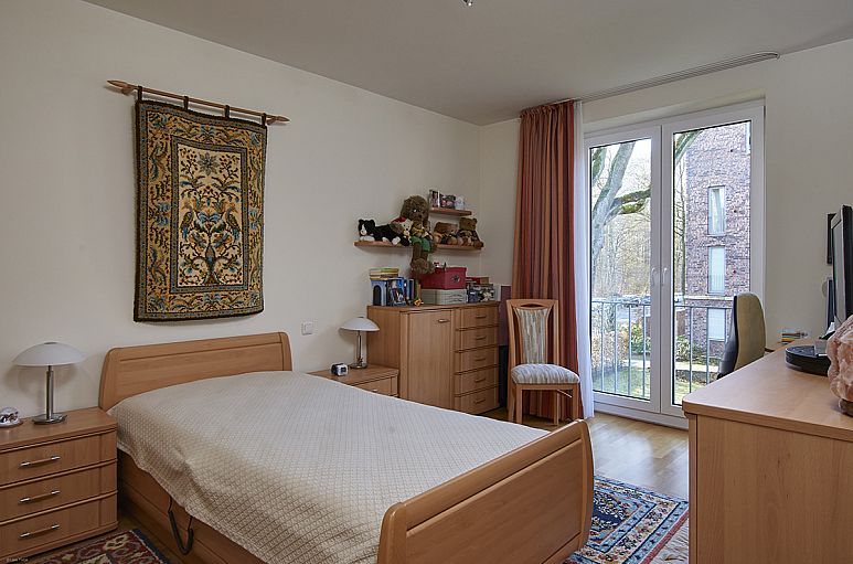 Die Wohnanlage wurde 2007 direkt am Volksdorfer Ortskern erbaut und besteht aus zwei Baukörpern, die durch die Tiefgarage verbunden sind. Die zum Kauf angebotene Eigentumswohnung liegt im ersten Obergeschoss Mitte des Hauses 2 mit insgesamt 11 Wohnungen und Lift.