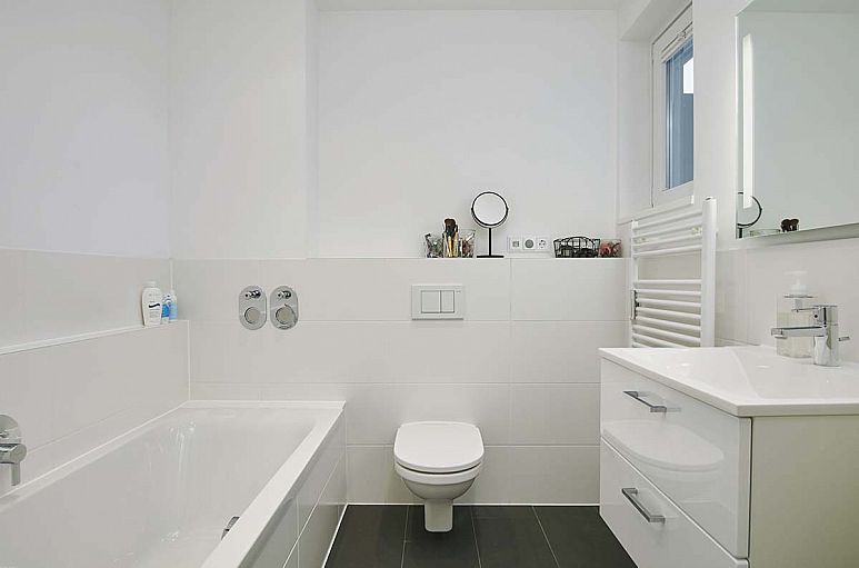 2011 wurden folgende Arbeiten durchgeführt: Dämmung des Daches über der Wohnung und Erhöhung des Schallschutzes an der Wand zum Penthouse - Nachbarn. Erneuerung der Elektroinstallationen, und Herstellung glatter Wände. Austausch aller Heizkörper in der Wohnung - Küche mit glattem Design-Heizkörper, Bäder mit Handtuchtrocknern. Erneuerung der zwei Bäder in weiß/anthrazit. Einbau einer neuen Küche mit weißen Fronten von Novus by ALNO. Fußböden mit Laminat in Holzfarbtönen und spezieller Trittschalldämmung aus Trockenestrich mit Ouarzsand. Halogen-Deckenstrahler in Diele und Bädern. Der große Hobbyraum mit Heizung, im Keller des Hauses wurde mit neuem Fußbodenbelag ausgestattet und weiße Kunststofffenster eingebaut.