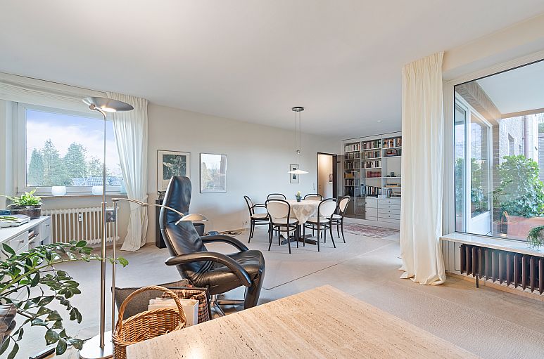 Großzügige, helle Räume und ein sehr gepflegter Zustand prägen den besonderen Charakter dieser Wohnung. Eine Modernisierung der Außenfenster und -türen ist geplant, die Kosten werden durch eine erhöhte Instandhaltungsrücklage der Anlage angespart.