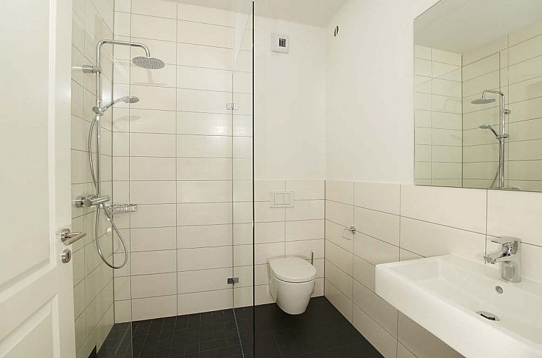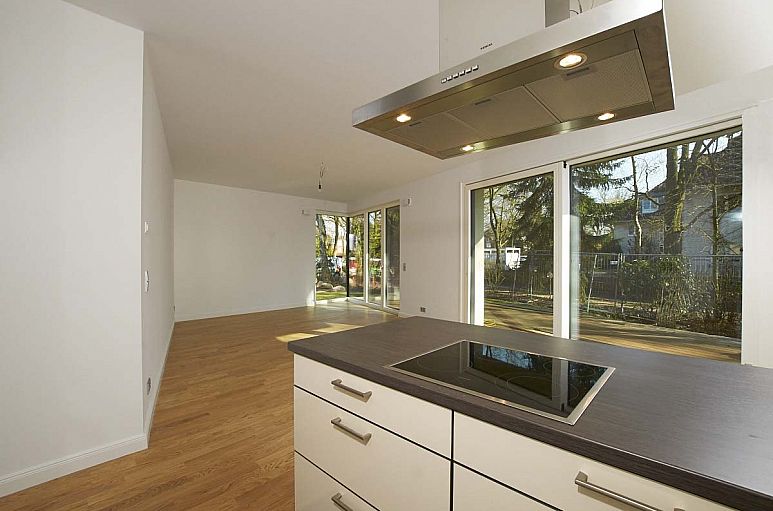 Aufwändige, moderne Architektur mit großzügigen, lichtdurchfluteten Räumen. Fahrstuhlanlage. Großzügige Holz-Terrasse, teilweise überdacht. Zahlreiche, bodentiefe Fenster sowie breite Schiebetür zur Holzterrasse. Zentrale Be- und Entlüftungsanlage. Fußbodenheizung. Eichenparkett in allen Wohnräumen. Wohn- / Essbereich und Küche sind offen miteinander verbunden. Marken- Einbauküche mit weißen Hochglanzfronten, freihängender Edelstahl- Filterhaube, Ceran-Kochfeld und Backofen in Augenhöhe, Geschirrspülmaschine, Kühl- / Gefrierkombination. Küche mit großformatigen Fliesen, farblich an das Eichenparkett angepasst. Vollbad mit weißen Objekten und Chrom-Armaturen, Doppelwaschbecken und ebenerdiger Dusche. Zusätzlich ein Gäste-WC mit Glasdusche in gleicher Ausstattung. Die Bäder mit großformatigen Fliesen, Wände in weiß bzw. Glasmosaik in weiß, Fußböden anthrazitfarben gefliest. Hauswirtschaftsraum mit Waschmaschinenanschluss in jeder Wohnung, Fliesenbelag wie Küche. Abstellraum. Pellet-Heizung mit zentraler Warmwasserbereitung.