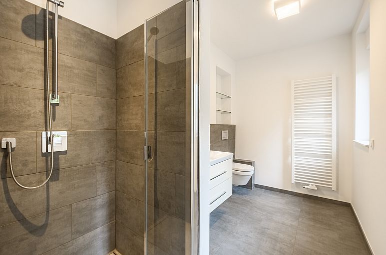 Die Villa wurde 2017 mit zwei Vollgeschossen und Staffelgeschoss erbaut und mit sehr viel Liebe zum Detail von einem Architekten geplant (Erstbezug Januar 2018). KFW 55 Standard. Rotklinkerfassade, weißes Staffelgeschoss mit Dachterrasse, zahlreiche bodentiefe Fenster, 3-fach-verglast, elektrische Außenrollläden, zentral steuerbar. Außen - Wandleuchten. Teilkeller als „weiße Wanne“ ausgeführt mit ausgebautem Raum. Beheizung und Warmwasserbereitung über Erdwärmepumpe mit kontrollierter Be- und Entlüftung.